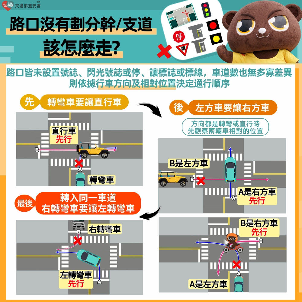 路口沒有劃分幹/支道怎麼走?