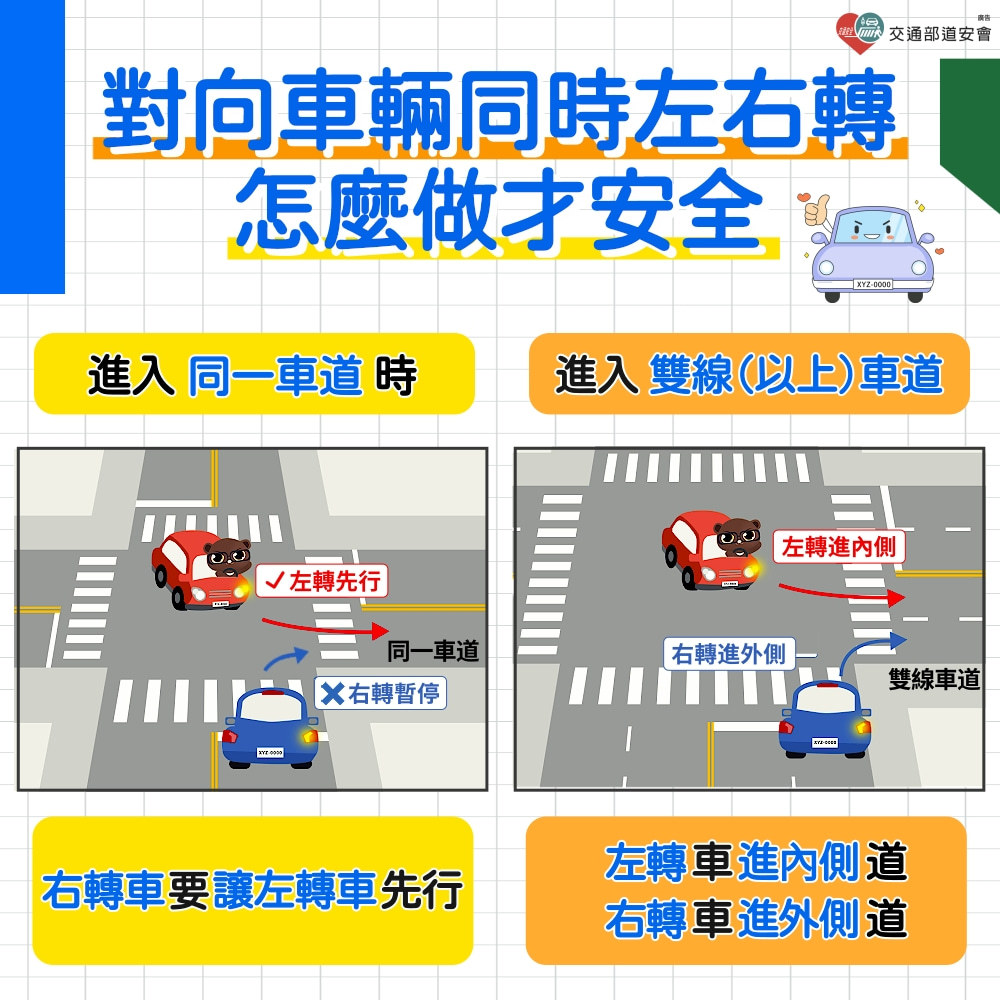 對向車輛同時左右轉,怎麼做才安全