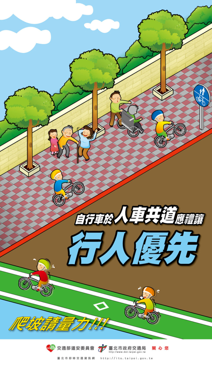 「自行車於人車共道應優 先禮讓行人」海報