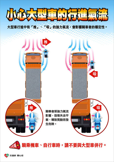 機車與大型車發生事故,姑且不論鑑定或司法判決結果對機車騎士是否有利,但是造成機車騎士的傷害是必然的;在看過別人的死亡事故案例後,請機車騎士更要強化自身防禦駕駛觀念,大型車周邊都是高危險地帶,所以請遠離大型車。